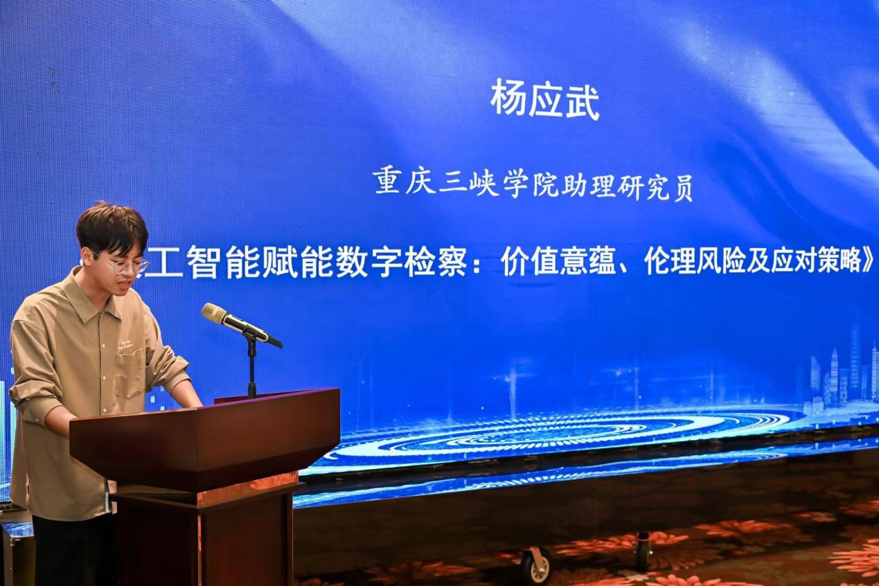我院教师杨应武在“数字法院建设经验交流与分享”分论坛做《人工智能赋能数字检察:价值意蕴、伦理风险及应对策略》的主题发言。提出数字检察的本质特征体现在三方面:违法犯罪形态日趋信息化、数据化;检察监督行为的数字化、网络化;以及检察司法理念与制度规则的数字化适应。人工智能赋能形成数字检察工作新格局的同时,也伴随强烈地伦理秩序挑战与冲击。风险涵盖技术层面的算法偏差与决策风险、司法层面的主体性削弱与信任危机、法律层面的信息安全与责任归属难题。应当构建技术、伦理与法律三位一体的综合规制体系:包括强化技术控制,筑牢人工智能根基;厘定伦理边界,确保科技以人为本;完善法律框架,实现有序规范应用,让科技真正为司法赋能。