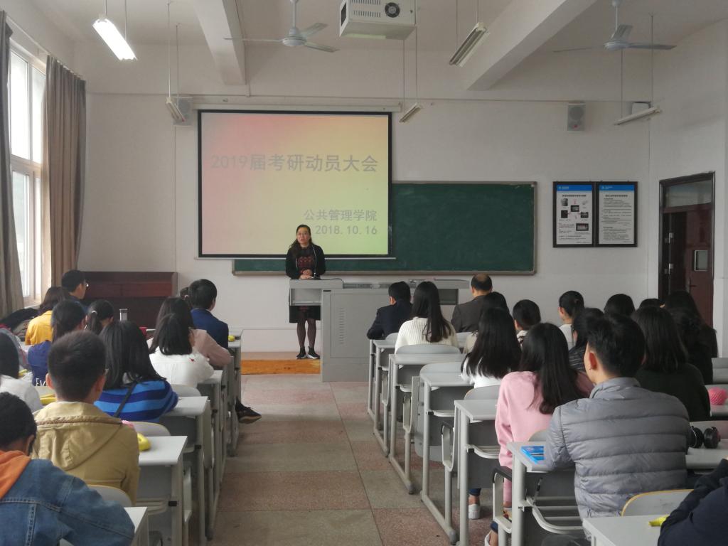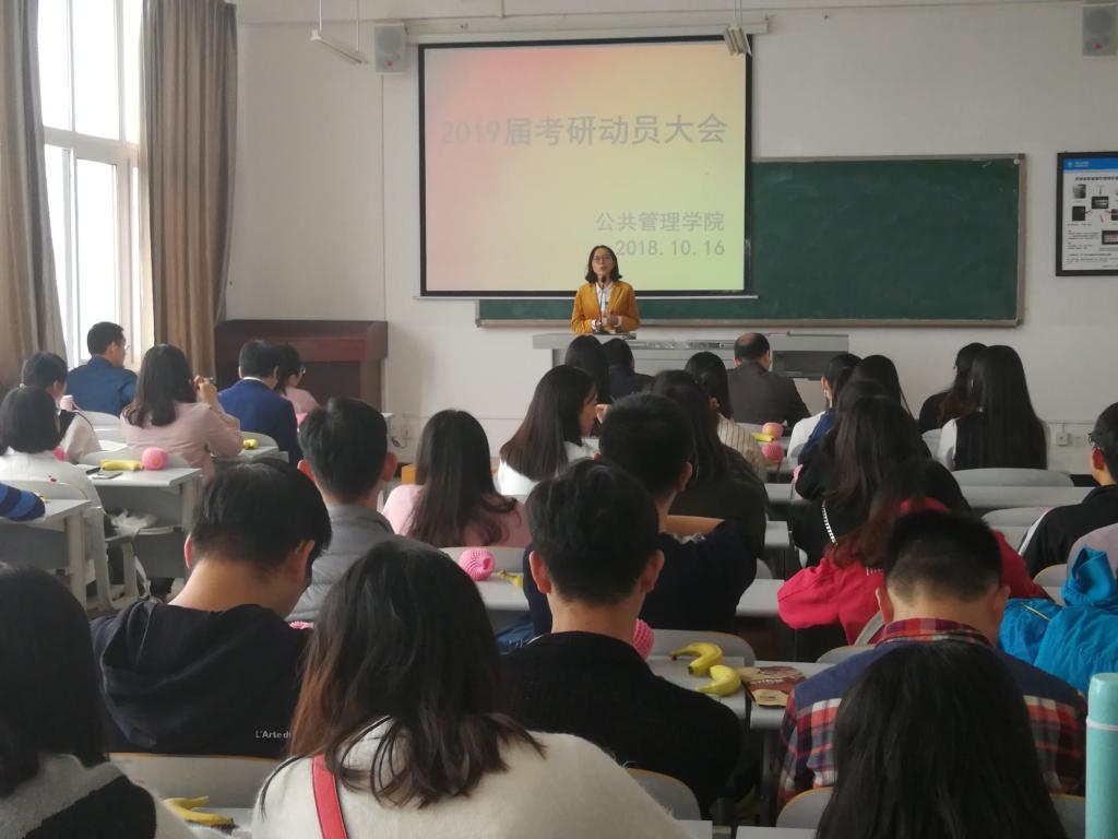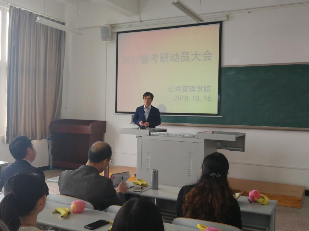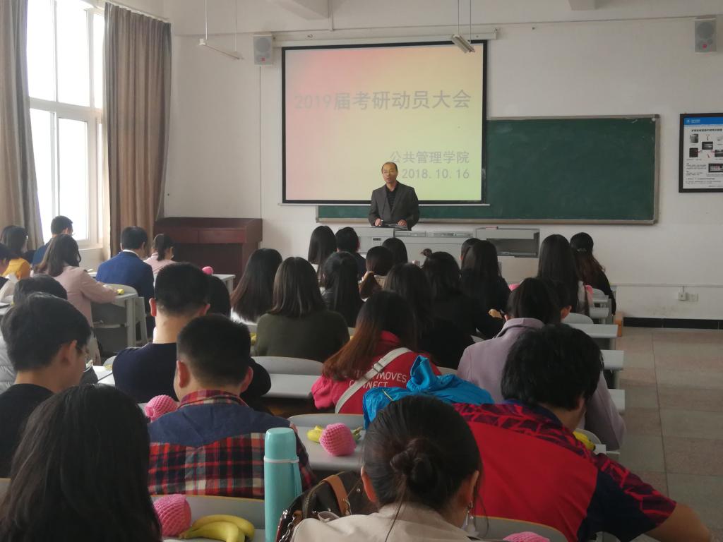 会上学院领导对考研同学做动员讲话,各系主任老师针对不同专业做考研动员。黄书记针对近期考研自习室的问题向考研同学做解释说明,希望同学们理性表达诉求,有问题及时给辅导员反映,承若学院会尽最大的努力帮助同学解决问题,更好的服务同学。秦副院长从职业发展的角度为各位同学讲解了考研的重要性,倡导大家积极准备。谭晓静老师以自己的亲身经历,为各位同学做了“从一而终,以终为始”的发言,希望各位志于考研的同学可以始终如一,在坚持中取得满意的成绩。最终,陈院长进行了总结发言,提醒广大同学备考的同时,要多关注相关院校的招生信息,做到心里有数,尤其是初试之后的复试,要提前做好准备工作,争取取的好成绩。
