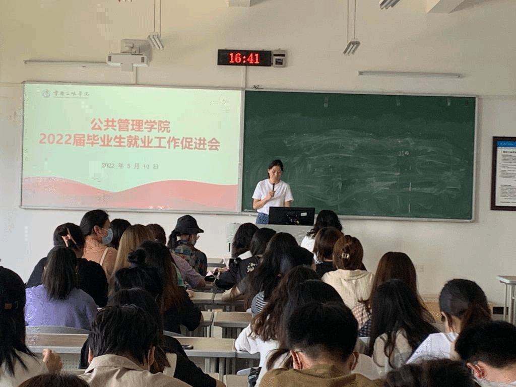 王凤英老师首先对2022届全国普通高校毕业生就业促进周(重庆分会场)双选活动、近期学校就业促进周系列活动进行了详细介绍,对后期就业重点工作、毕业生离校后的就业跟踪相关事宜做了重点说明。