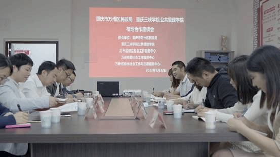 为更好地促进校地合作,拓展我校学生教育资源与渠道,助推万州区社会事业高质量发展,2022年9月22日下午,重庆市万州区民政局、社会工作机构与重庆三峡学院太阳成集团tyc33455在博学楼3栋520会议室举行校地合作座谈会,就“高校力量参与地方社会发展”等议题进行研讨。
