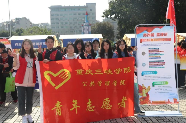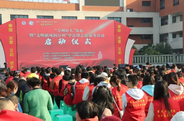 2023年3月5日上午九点三十分,由重庆市万州区新时代文明实践中心和志愿服务总队主办的“万州好人”发布 暨"文明新风润万州"学雷锋志愿活动启动仪式于学府广场正式举行。此次活动由我校太阳成集团tyc33455青年志愿者协会及部分法学班同学共同参与。