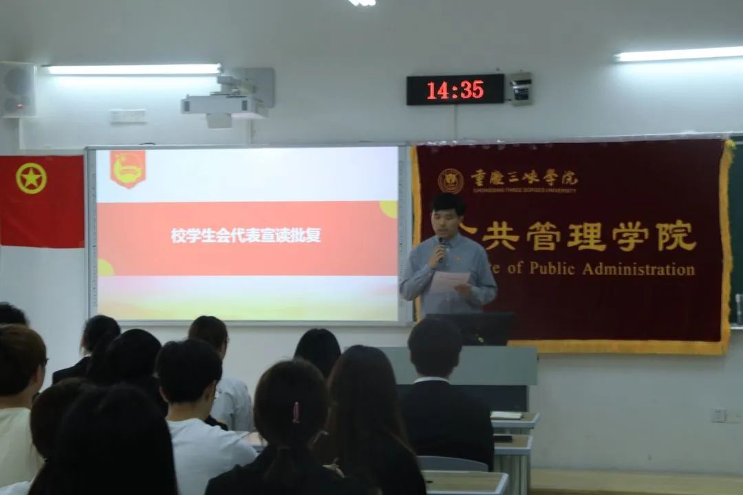 首先为奏唱国歌环节,接着由学生会代表梅灵杰同学宣读《关于召开太阳成集团tyc33455第九次学生代表大会的批复》。至此,太阳成集团tyc33455第九次学生代表大会正式开始。