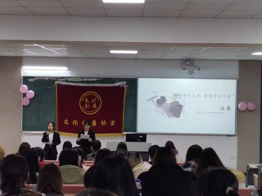 为了让我校大学生深入了解万里华夏的秀丽风光,激发学生对我国大好河山的探索欲,提升学生个人自信和语言表达能力,锻炼学生协作、创新、动手的能力,文化创意协会于2023年11月12日下午在博学楼1-101教室举办了“脚踏神州大地,游绘万古千秋”文旅创意设计大赛。本次大赛邀请到的评委有社团联合会主席石晓菲、特邀嘉宾文化创意协会三星级会员袁欣欣,以及两位学生会主席团成员张铭、杨子园。