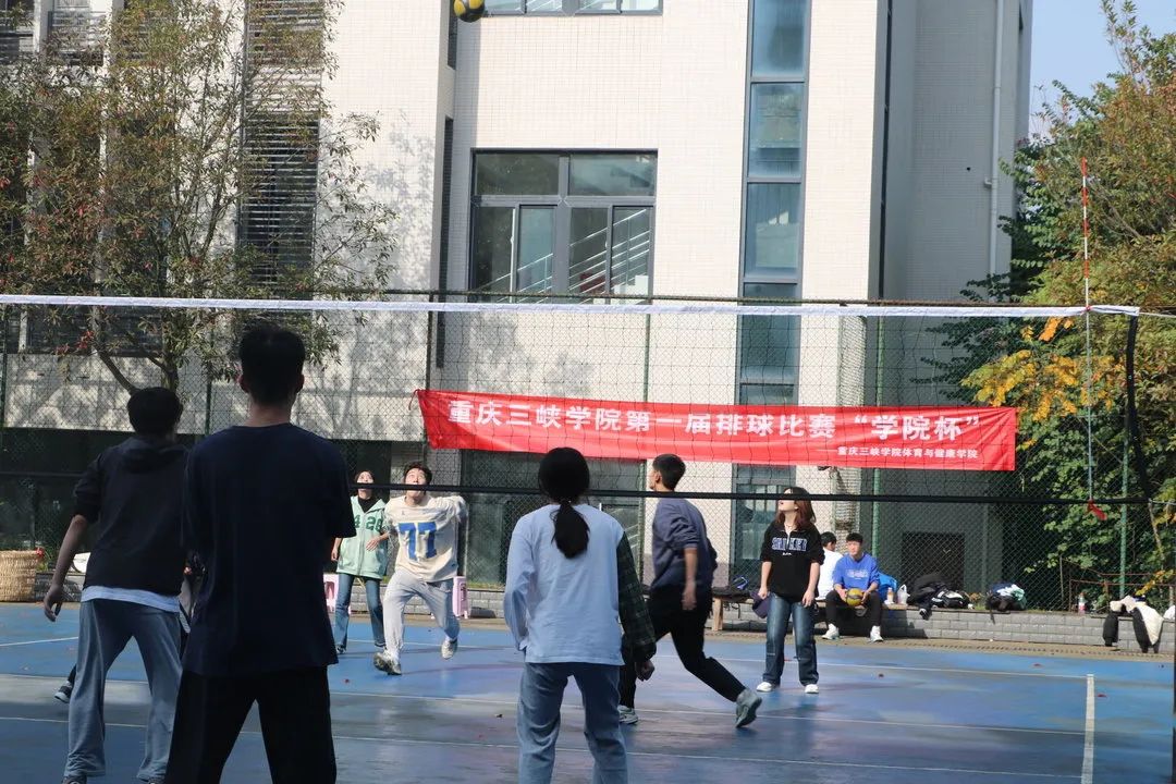 为丰富学生课外生活,加强学生身体素质,提高学生团队合作能力。2023年11月26日下午,重庆三峡学院第一届排球比赛“学院杯”小组赛在我校室外羽毛球场展开。
