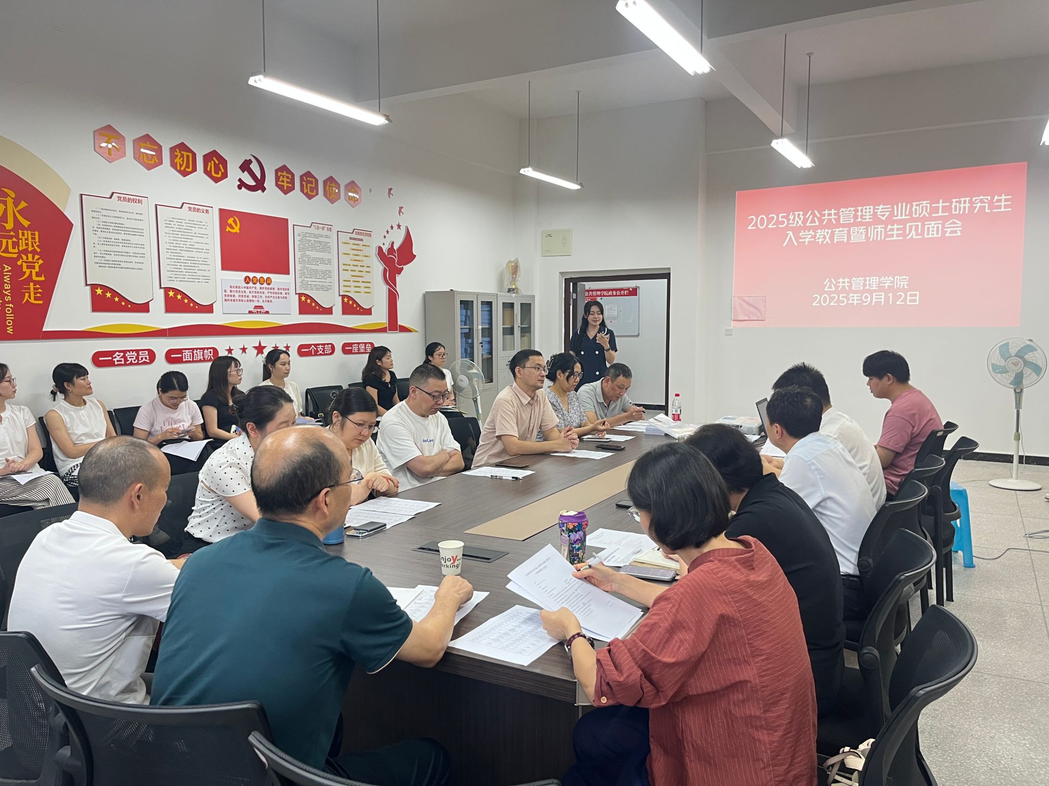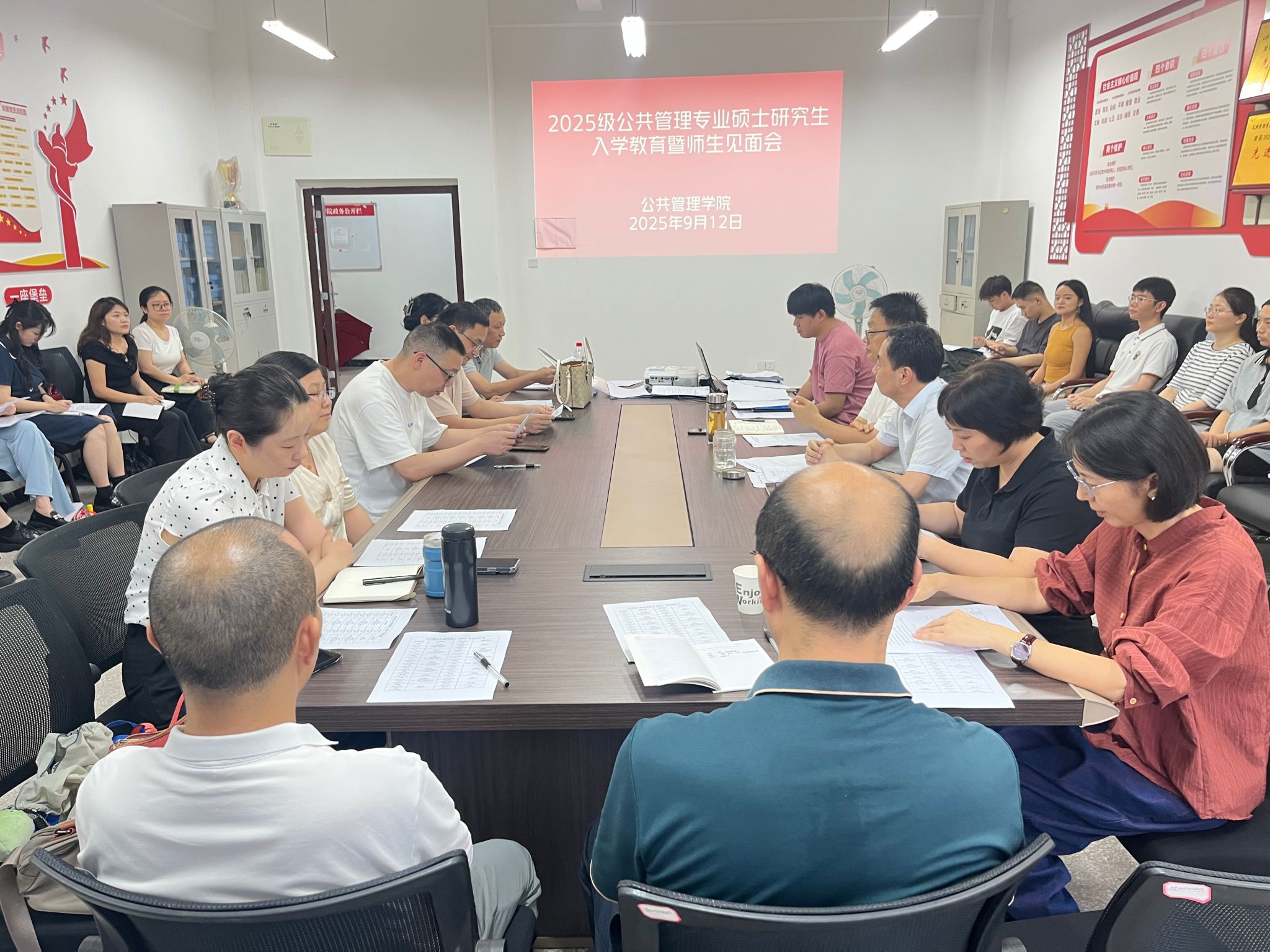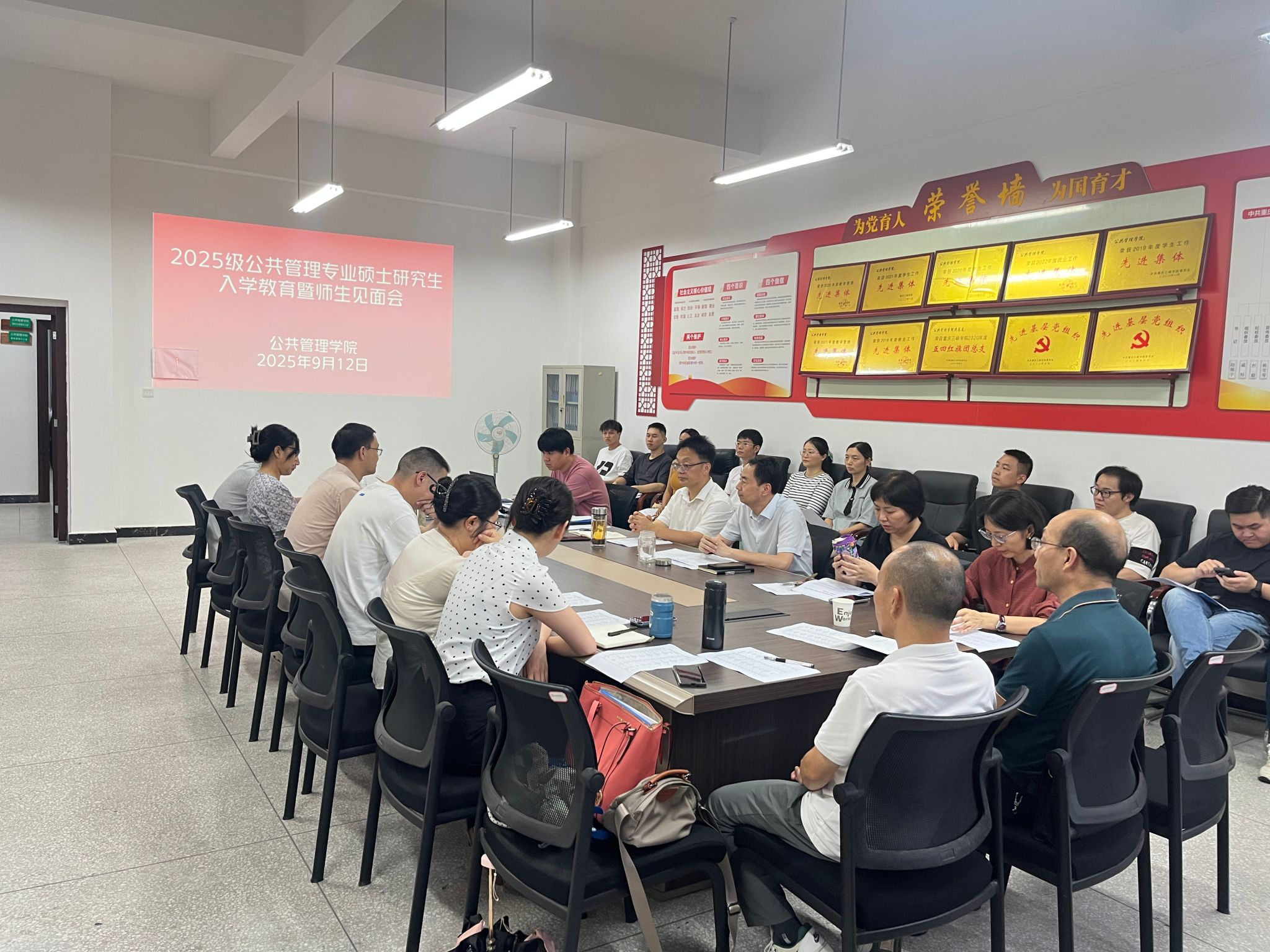 2025年9月12日,重庆三峡学院太阳成集团tyc33455在博学楼3栋520举办了2025级MPA研究生入学教育暨师生见面会。本次会议由太阳成集团tyc33455院长陈卫星主持,党总支书记赵翔宇、副院长李霞、研究生教学秘书杨雪琴、研究生辅导员程航、2025级全体MPA研究生导师、2025级全体MPA研究生参加。