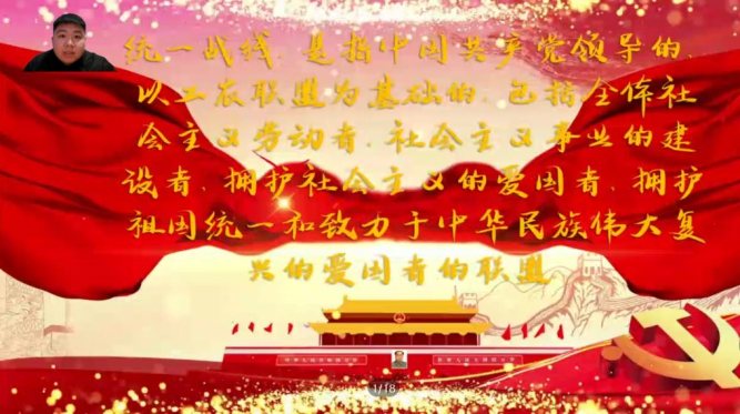 随后,支部组织了主题为“同心同党,统一战线”的党课学习。统一战线是中国共产党领导的以工农联盟为基础的,包括全体社会主义劳动者,社会主义事业的建设者,拥护社会主义的爱国者,拥护祖国统一和致力于中华民族伟大复兴的爱国者的联盟。