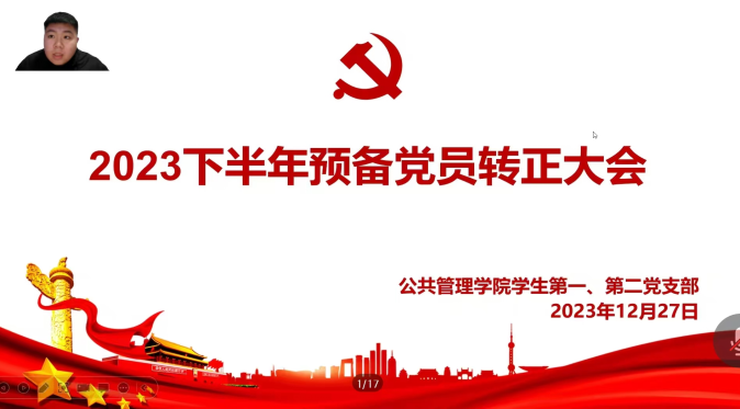 2023年12月27日,我院学生第一、二党支部通过腾讯会议组织2023年下半年预备党员转正大会并开展主题党课学习。本次会议由学生第二党支部书记程航同志主持,学院学生党支部全体人员参加会议。