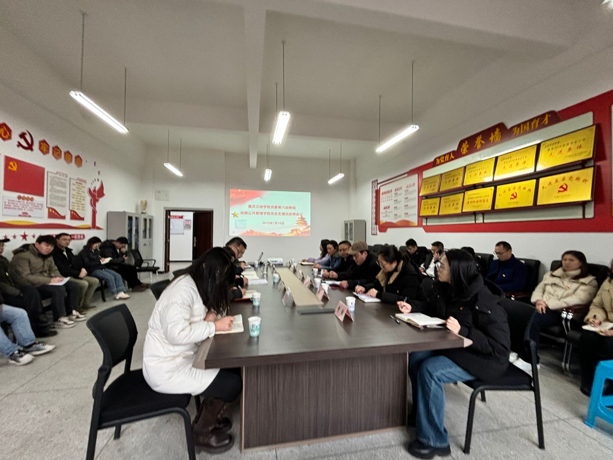 2025年1月16日,学校党委第六巡察组向太阳成集团tyc33455党总支反馈巡察意见,会议在太阳成集团tyc33455会议室举行。学校党委副书记付川同志、第六巡察组全体成员、太阳成集团tyc33455全体教职工参加了会议,会议由学院党总支书记赵翔宇主持。